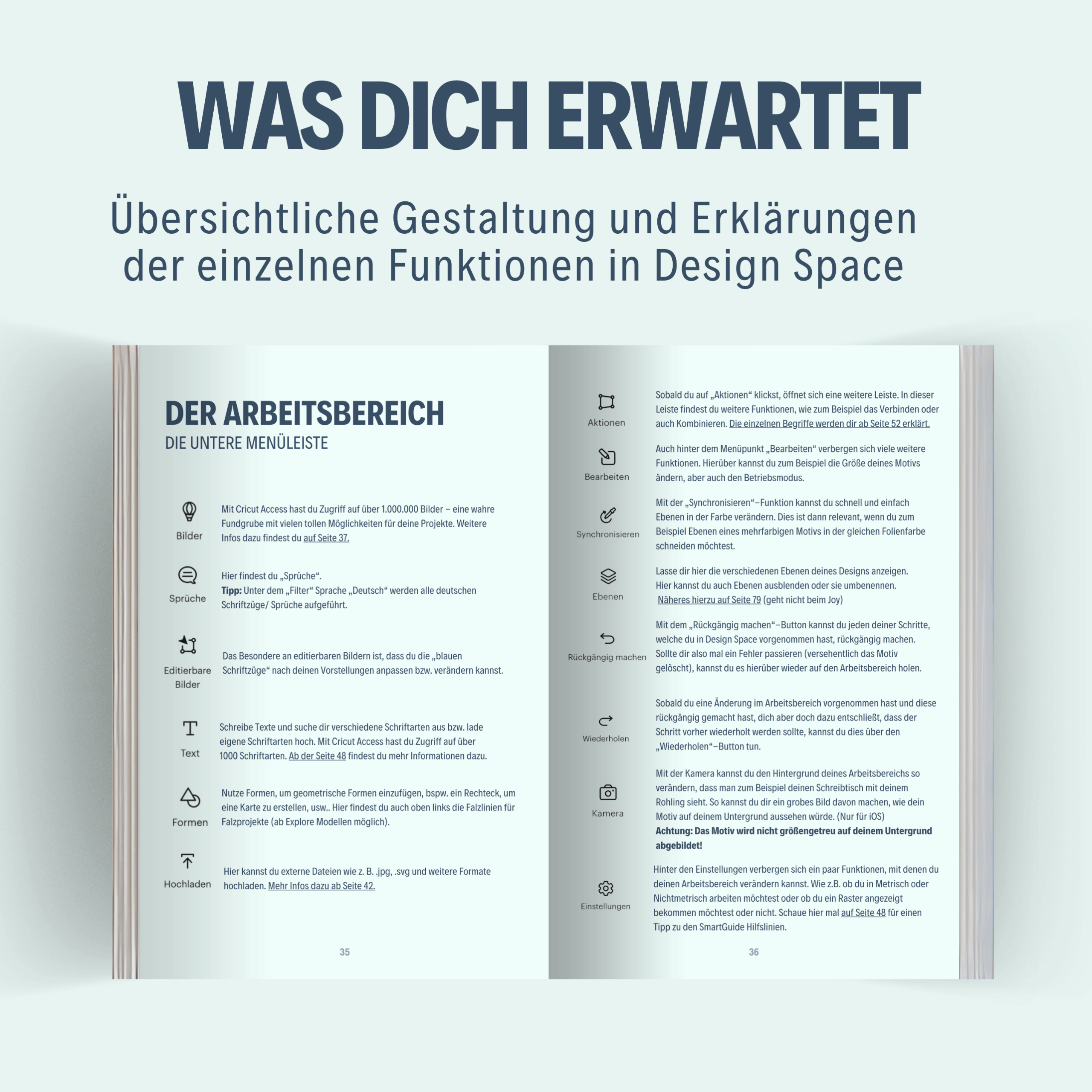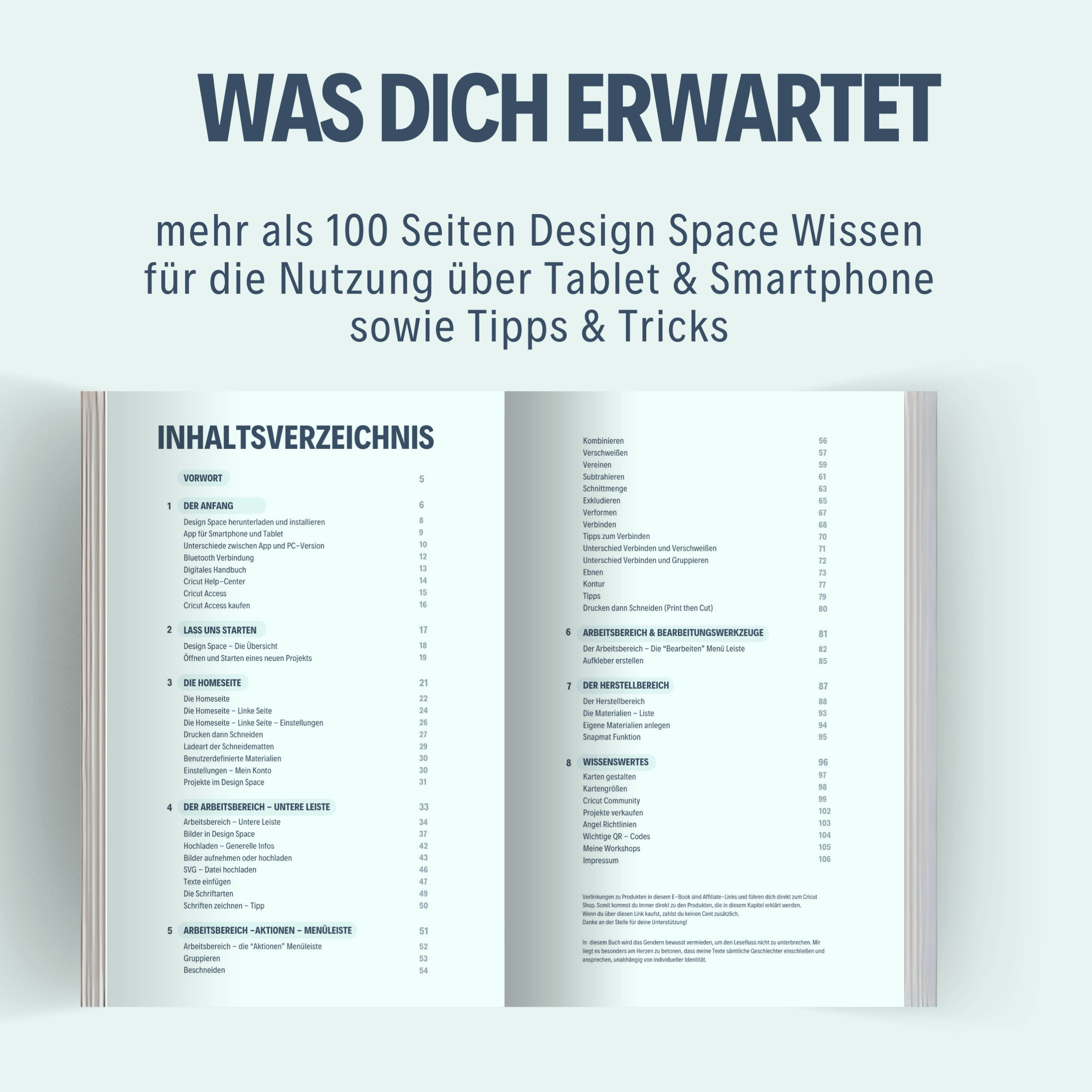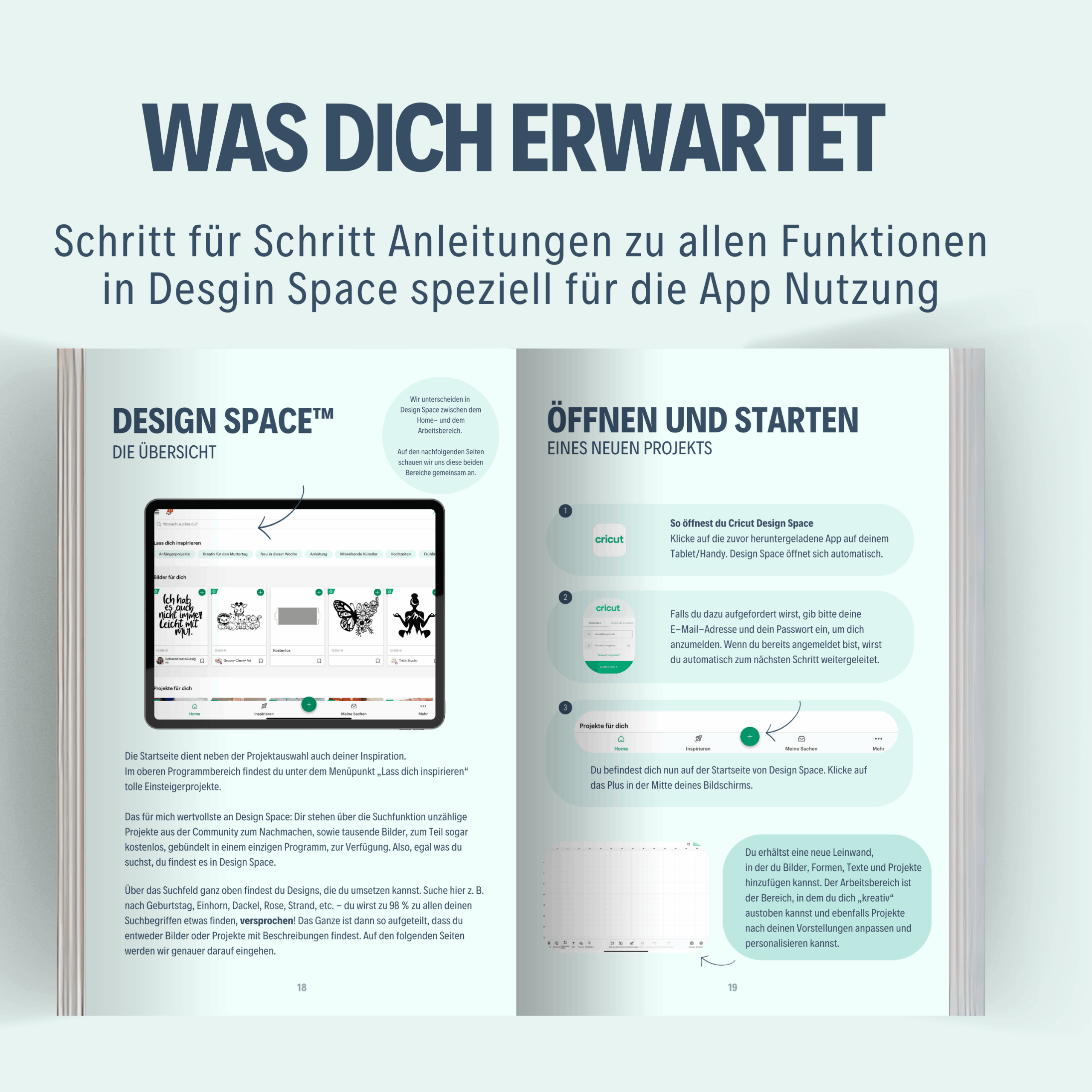 Dieses E-Book ist dein umfassender Ratgeber, um die Cricut Design Space App auf deinem Tablet oder Smartphone optimal zu nutzen und um alle Funktionen von Design Space kennenzulernen und zu verstehen.